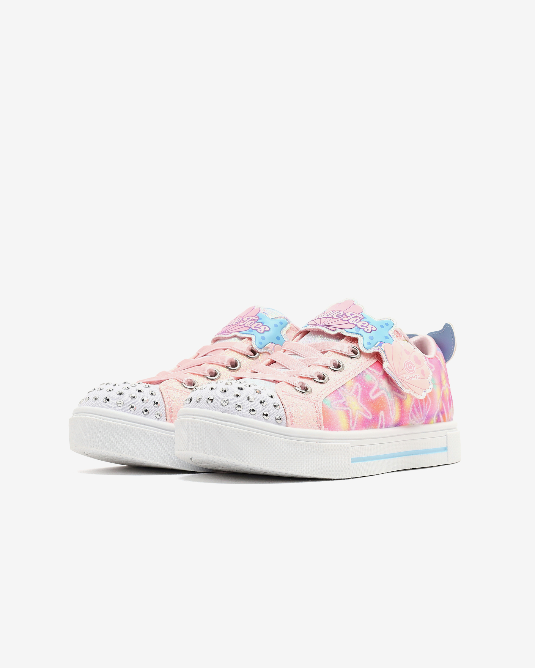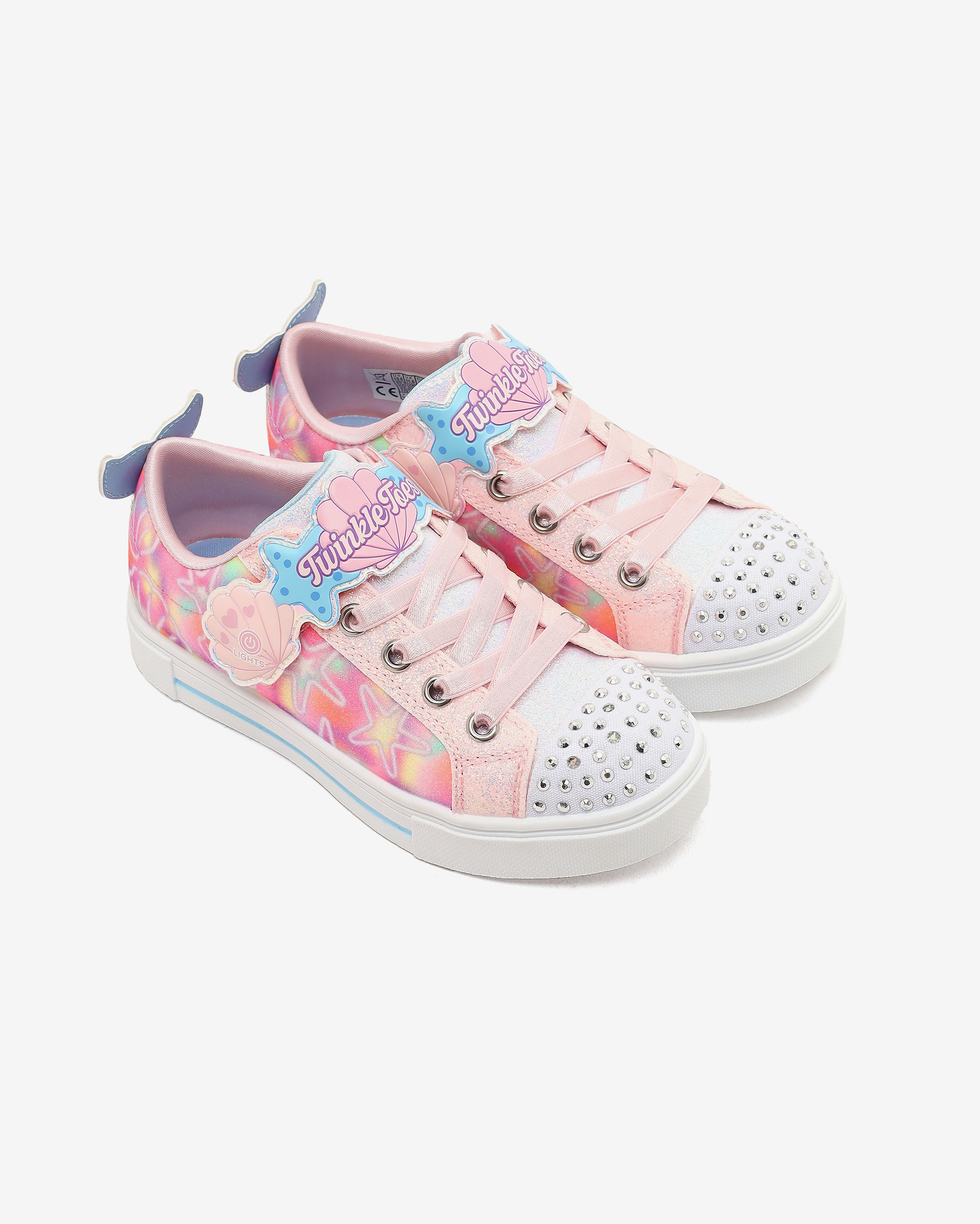 Skechers Twinkle Toes: Twinkle Sparks - Underwater Magic kız çocuk ışıklı spor ayakkabı ile büyülü deniz kabuğu stilinde kıyıları keşfedin. Yastıklı, konforlu iç tabana sahip olan bu ayakkabılar, tabanda doğru şekilde ve doğru noktalara yastıklama yaparak her adımda yastıklara basıyormuş gibi hissetmelerini sağlar. Darbe emici vulkanize orta tabanı, zorlu yüzeylerde bile çocukların rahatça yürümelerini sağlar. dış tabanı, ayakkabının her türlü yüzeyde kaymasını önleyerek güvenli bir yürüyüş deneyimi sunar. Skechers'ın kişiye özel uyum için tasarladığı, kolay giyilip çıkarılabilen uyarlanabilir kapatma özelliği sayesinde, çocuklar ayağını kullanarak bağımsız bir şekilde ayakkabılarını giyebilirler. Üst kısmı kanvas saya, deniz kabuğu deseni ve ayarlanabilir cırt cırt bantlıdır, bu da pek çok farklı kıyafet ile kombinlenmesine olanak tanır.