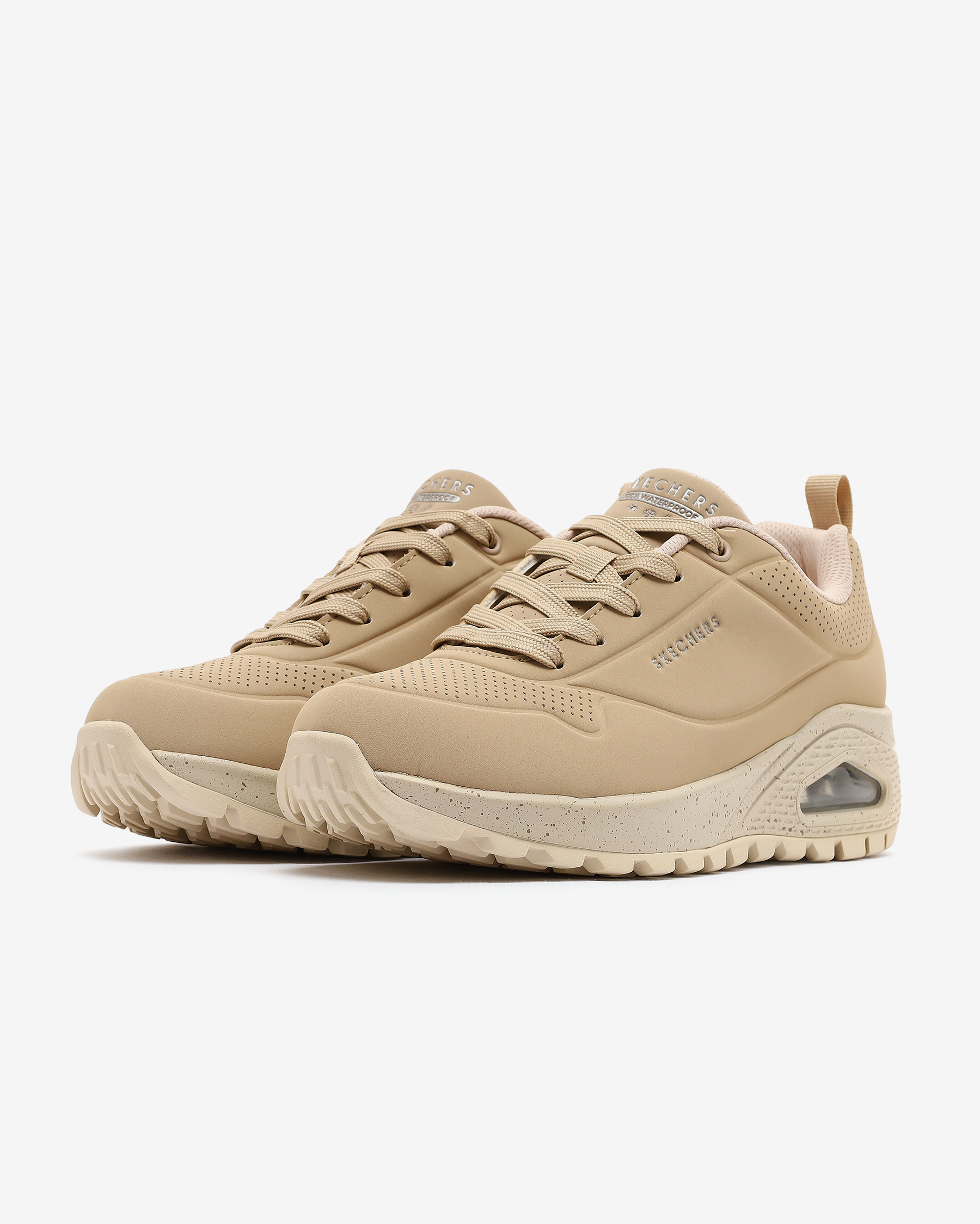 Su Geçirmez TasarımDikiş yerlerinden bile su geçirmez yapısıyla Skechers Street™ Uno Rugged - Spotted Terrain kadın sneakers, yağmur ve ıslak zeminlerde güvenle adım atmanı sağlar. Esnek kauçuk dış tabanı güçlü yer tutuşu sunarken, dayanıklı üst yüzeyi uzun vadeli kullanım için ekstra koruma sağlar.